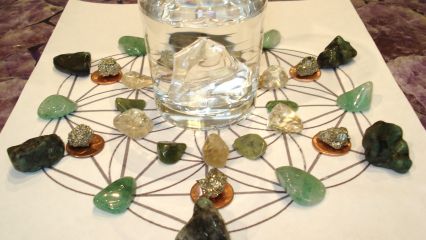 First of all you need to choose a stone that suits the aim of your spell and make sure that it is thoroughly cleansed. When the stone is clean place it in the bottom of a clear glass or bowl and cover it with water. Natural spring water or rainwater are best. If you cannot get them then you can use bottled mineral water (still, not fizzy!) or tap water. Remember that for the best results you should cleanse every item that you are going to use inside your magic circle to avoid introducing any unwanted energies to your spell.